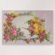 Large puzzle for Easter or just springtime with a little yellow chicks in an egg shell surrounded by roses and flowers.