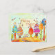 Cute illustration of little chicks joyfully celebrating Easter in Easter Land designed on custom Easter Postcards.