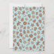 Whimsical and sweet Christmas theme baby shower invitation card featuring hand drawn illustration of holiday cookies. The text says "our little cookie is on the way." The background is blue and is perfect for a boy baby shower.