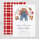 Saddle up for a sweet celebration with this adorable Little Cowboy baby shower invitation. Featuring watercolor overalls, cowboy boots, hat, and western gear, this design brings cozy country charm to your special day. The red gingham pattern adds a classic farmhouse touch, making it perfect for a warm and welcoming gathering.