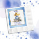 Oh, boy, it's a Lil' Cowboy! Blue and brown baby shower napkins featuring a little baby boy in a cowboy hat sitting with a teddy bear, train and baby chick. Country and western themed rustic boy's baby shower.