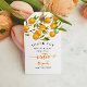 Cute little cutie theme baby shower party favor tag featuring watercolor illustration of oranges on a tree.