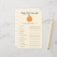 Cute little cutie theme baby shower baby word scramble card featuring illustration of an orange fruit on a gender neutral yellow background. The list of words on this card are all related to babies and they are scrambled. The guests are going to compete who can unscramble all of them first! ANSWER KEY: 1. car seat 2. milk 3. playpen 4. pacifier 5. diaper 6. rocking chair 7. nursery 8. baby monitor 9. swaddle 10. formula 11. rubber ducky 12. stroller.