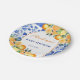 Elegant watercolor citrus-themed baby shower paper plates. The design features watercolor illustrations of oranges, clementines, lemons and green leaves, against a charming tiled background for a summer Mediterranean feel. Use the design tools to customize the text, fonts and color.
