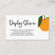 A display shower insert card for little cutie citrus themed baby shower. Featuring little cutie orange clementine and poem: "Your beautiful gift will be put on display