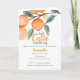 A lovely bright neutral baby shower invitation design. A Little Cutie is on the Way Collection features watercolor oranges, playful fonts and cheery colors.