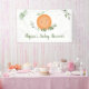 This cute birthday banner features lush watercolor greenery with a cute clementine.