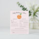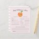 Cute little cutie theme baby shower baby predictions and advice card featuring an illustration of an orange with white flower on her head. The texts are editable. Perfect game to play during the shower and will definitely be a great keepsake! The card asks guests to predict what the baby would look like.