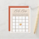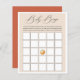 Elegant signature calligraphy "Baby Bingo" graphic, baby shower game sheet. Watercolor orange and soft pastel orange color frame with coordinating rustic orange color backing.