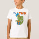 Little Dino 2nd Birthday T-shirts, bodysuits, cards, stickers, birthday buttons, tote bags, keepsakes, and other dinosaur 2nd birthday apparel and gifts featuring a green smiling dinosaur with balloons, party hat, and a gift!