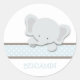 A cute little elephant peeks over blue and white polka dots. Customizable with your child's name.