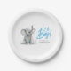 Little Elephant Oh Boy Cute Blue Grey Baby Shower Paper Plates
