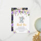 Baby shower thank you card with lovely script, purple flowers and an adorable baby elephant. The text and colors can be personalized.