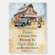 "Our Cute Little Farmer Is Turning Two!" rustic country barn and pickup truck boy 2nd Birthday Party celebration design.