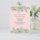 Adorned with top and bottom borders of little white blossoms and green leaves this pink invitation is perfect for any little girl's celebration. <a href='http://www.freepik.com/free-vector/wedding-invitation-with-leaves-and-flowers_976544.htm'>Designed by Freepik</a>. <br/><br/>The card is easy to customize with your wording, font, font color, paper shape options and choice of six paper types.<br/><br/>Not exactly what you're looking for? All our products can be custom designed to meet your needs at no extra charge.<br/><br/>Simply contact us at askcottonlamb@gmail.com<br/><br/>Coordinating products available: Just ask us!