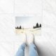 A winter watercolor landscape with a little fox hunting in the snow adorns this doormat! Customize by adding your own text!