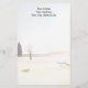 A winter watercolor landscape with a little fox hunting in the snow adorns this customizable stationary!