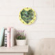 LITTLE FROGS ON A GREEN LEAF RED RUBY, Yellow Large Clock