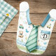 Dress up dinner time with this "Little Gentleman" baby bib! This adorable design mimics a smart dress shirt and tie, complete with whimsical toy and animal illustrations, perfect for your dapper little diner. The pocket detail can be personalized with your baby's initial for that extra special touch. It's not just cute but also practical, made with a soft, absorbent material to catch any spills and splashes. Ideal for a fancy family gathering or just for fun, this bib is sure to be a hit at the high chair. Snap one up for your own little gentleman or as a charming gift!