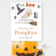 Featuring cute watercolor of baby ghost and Halloween aesthetics. A little boo is almost due! Halloween themed baby shower with watercolor ghost, black cat, witch's hat, magic mop ( broomstick ), spider hanging from a web. The little ghost is eating a lollipop.