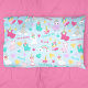 Give your little girl her own adorable llamacorn pillow case. Pillow case has cute pastel llamas dressed as unicorns interspersed with the text "I am a unicorn" and "llamacorn." There are also pink, yellow, and blue teal stars and hearts. Add a personal touch to the pillow case with your little one's first name.