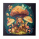 Little girl elve among mushrooms ceramic tile