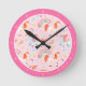 Little Girl Pink Unicorn Pattern with First Name Round Clock