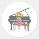 little girl playing piano classic round sticker