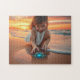 Little girl playing with a crab jigsaw puzzle