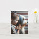 Cute little girl with pigtails and hands folded in prayer with a Bearded Collie dog blank note card