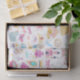 Does your little girl love princesses? This birthday tissue paper is perfect! Tissue paper has a pattern of an assortment of princess-related items, like dresses, slippers, flowers, birds, butterflies, unicorns, castles, magic wands, carriages, stars, hearts, mirrors, crowns, swans, and more. Add a first name for a personalized touch, or remove, per your preference. (If you remove, you can also remove the background hearts by going into the edit area and clicking to delete.)