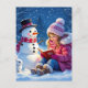 Little Girl Reading a Story to a Snowman Christmas Holiday Postcard