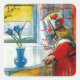 Little Girl with Blue Iris by the Window is just the right sticker to add to a Christmas or Winter note to a