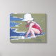 Ever play on the beach with a child? Did you play with the wetness of the waves and the sandiness of the sand? This is a beautiful painting of a little girl playing with the little waves at the edge of the beach is a beautiful gift for your beach comber loved one. She's wearing a red bathing suit and has a big white hat to keep off the sun. The beach baby is happy playing all by herself, totally concentrating on the feel of the slippery water sifting through her hands.