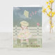 little girl with kite on bench for birthday card