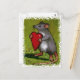 Little Grey Mouse Holding Red Heart: Oil Pastel Postcard