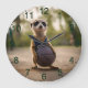 Little Hoop Star: Baby Meerkat Holding Basketball Large Clock
