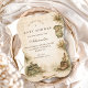 A cozy woodland baby shower design inspired by a gentle forest adventure. Illustrated with rustic greenery, pinecones, and a charming “little hunter” clothesline detail, this storybook-style layout feels warm, nostalgic, and nature-loving. Perfect for parents who love the outdoors, woodland themes, or rustic nursery aesthetics.