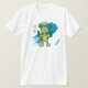 This fun Japanese mythology shirt features the infamous Kappa, a river imp with a love of cucumbers! This cute kappa is wielding two cukes in front of a blue background paint streak. His name is listed in both English and Japanese kanji, making this a great item for a lover of cute Japanese monsters!