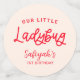 Cute party decor confetti for a ladybug theme girl's 1st birthday party. The text says "our little ladybug."