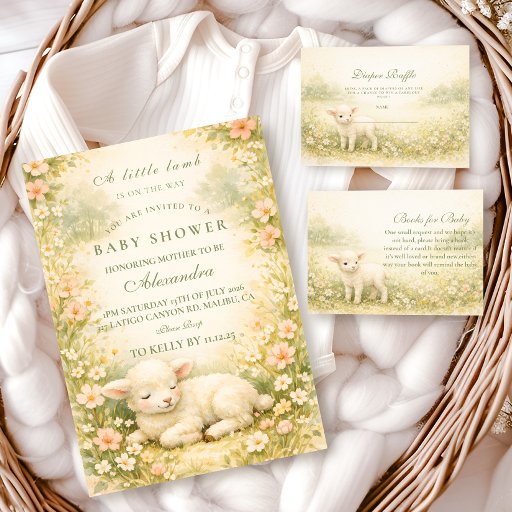 Little Lamb Wildflower Frame Baby Shower Invitation