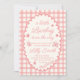 A pink gingham scalloped border frame for a little love bug themed baby shower invitation.