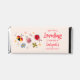 Cute ladybug theme birthday party chocolate favor featuring illustration of red and pink insects with wildflowers. Perfect for a girl's birthday party. The text says "our little lovebug is turning X!"