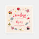Cute ladybug theme baby shower paper napkin featuring illustration of red and pink ladybugs and flowers. The text says "a little lovebug is on the way."