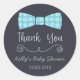 This little man or little gentleman themed baby shower sticker features light blue and off white bow tie on a warm gray background. The design also features a calligraphy heading that can't be edited and a decorative divider. Same design thank you card and invitation is also available at the store. This little ma bow tie themed baby shower sticker is ready to be personalized.