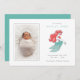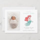 Welcome your little princess to the world with this enchanting Little Mermaid Ariel birth announcement. Featuring Ariel in her iconic undersea setting, surrounded by soft pastel colors and whimsical oceanic accents, this design is perfect for sharing the joy of your baby girl’s arrival. Customizable with all her birth details, this charming announcement is a delightful keepsake for Disney fans and a magical way to celebrate your new addition.