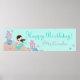 Sweet little mermaid under the sea with fishes, sea shells, anemone, and coral reefs birthday banner.