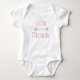 Because they are little miracles. This adorable outfit would make the perfect gift for that sweet little one in your life. Purchase it for a shower gift or give it directly to that sweet little one. This fun design features bold text that reads, “Little Miracle”, printed in pink with a gold looking arrow in the middle of the design. Design is appropriate for a girl. The product is available in many different styles and sizes to suit your child’s needs.