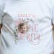 The Little Miss Onederful Girl 1st Birthday T-shirt is the perfect attire for the guest of honor celebrating her very first milestone. It features elegant pink calligraphy, enhanced by a lovely design of pretty pink wildflowers and sage green greenery adorning the phrase "Little Miss Onederful." This unique t-shirt is personalized to include the name of the birthday girl, adding a special touch to her big day. With its charming color palette of pink and sage green, it's designed to make her first birthday memorable and stylish.