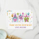 A fun and cute little monster thank you card with three funny monsters in bright colors with funny faces and googly eyes enjoying a monster mash birthday party. You can customise the text. There is blank space on the back of the card incase you would like to add a hand written note. See the whole matching party collection!